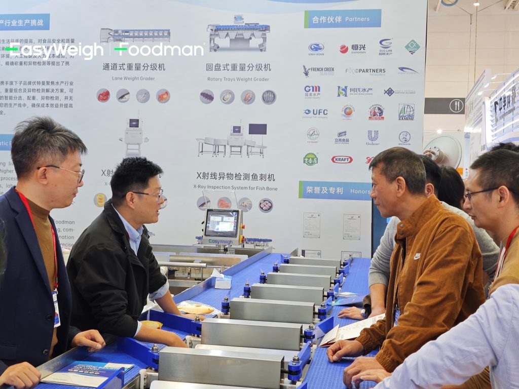Beyond equipment demonstrations, Foodman’s team engaged in meaningful conversations with customers, partners, and industry professionals from across China and around the world. Whether discussing inspection challenges in highly conductive wet products, solutions for mixed seafood packaging, or future technological trends, these exchanges reinforced Foodman’s position as a reliable technology partner for seafood processors seeking next-level automation and traceability.